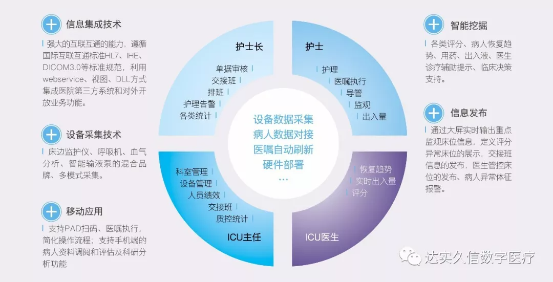 該係統整合了信息集成、設備采集、移動應用、信息發布、智zhi能neng挖wa掘jue五wu大da應ying用yong技ji術shu為wei一yi體ti的de專zhuan科ke診zhen療liao輔fu助zhu係xi統tong。通tong過guo信xin息xi化hua手shou段duan,減jian少shao醫yi護hu的de紙zhi質zhi文wen書shu的de書shu寫xie,並bing實shi時shi抓zhua取qu和he展zhan現xian病bing人ren護hu理li過guo程cheng數shu據ju,讓rang醫yi護hu能neng最zui快kuai地di了le解jie病bing人ren的de健jian康kang狀zhuang況kuang和he恢hui複fu趨qu勢shi,騰teng出chu更geng多duo的de時shi間jian和he精jing力li關guan注zhu病bing人ren病bing情qing。通tong過guo合he理li化hua設she計ji,讓rang科ke室shi護hu理li業ye務wu和he管guan理li業ye務wu有you條tiao不bu紊wen,並bing滿man足zu了le護hu理li過guo程cheng數shu據ju可ke存cun儲chu、易展現、可質控、可追溯的特點,以重症業務為核心,病人為主線,塑造符合重症專科的臨床係統。